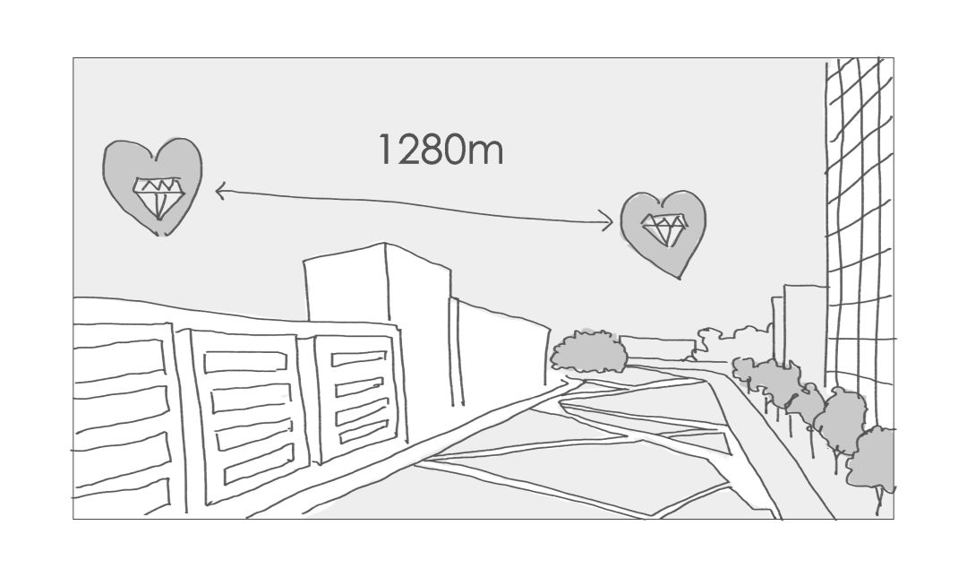 把两颗小钻石放在相距1280米的楼里,